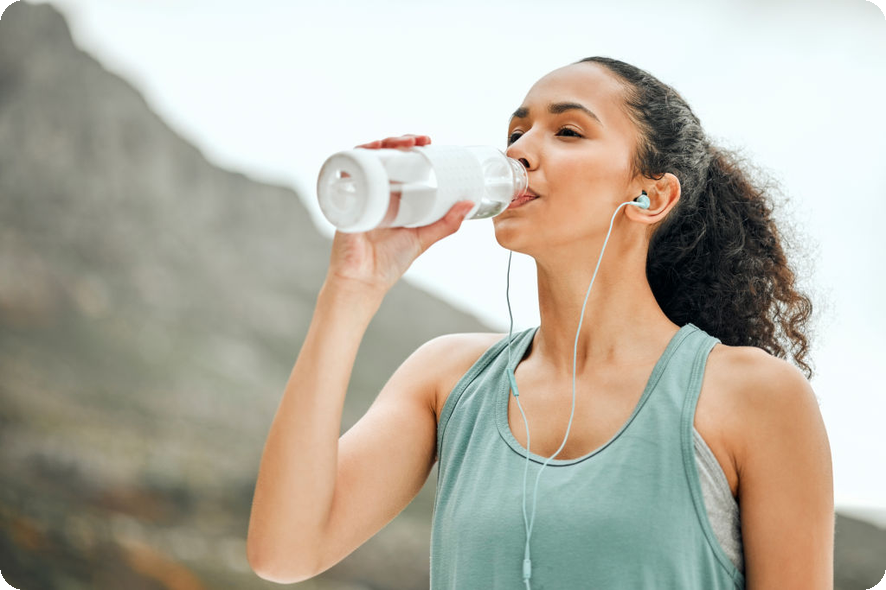 - 운동 중: 일정 간격으로 소량의 물을 마셔 수분을 보충합니다.